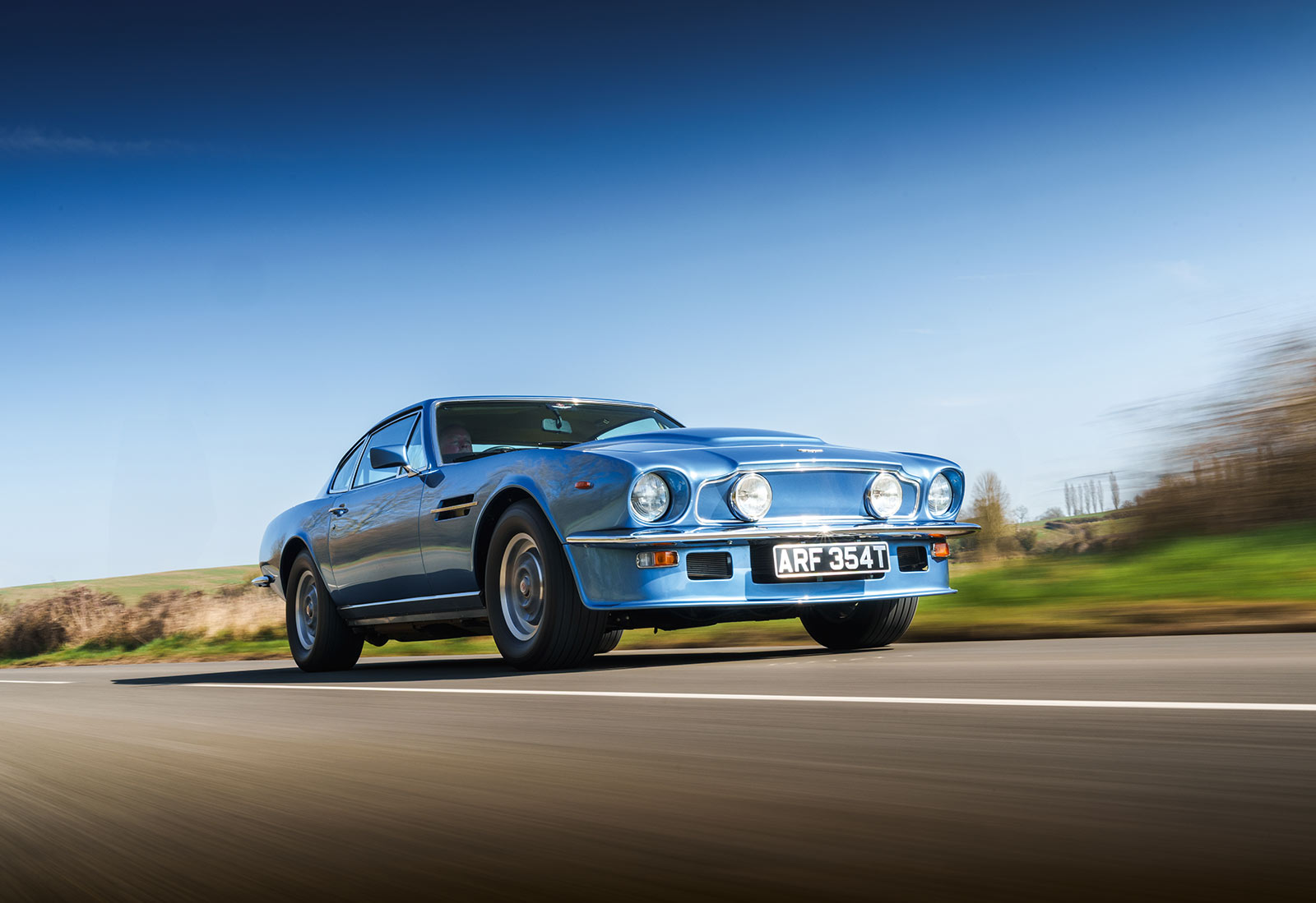 Aston Martin lief er immer als »Saloon«, sprich Limousine. Selbst als eine verlängerte viertürige Version des hier gezeigten Modells (Lagonda V8 Series 1) und der Extrem-Keil »Lagonda« – mit 1,30 Meter Höhe flachster Viertürer weltweit – erschienen waren. Für alle außerhalb Englands war er jedoch ein muskulöses, attraktives Coupé, das in der auf diesen Seiten gezeigten Top-Version »Vantage« zum schnellsten Auto aus Good Ol’ England avancierte. Ein komplett in Großbritannien entwickeltes Auto, trotz des sehr transatlantisch klingenden V8-Motors. Denn weder ein Chevy noch ein Chrysler, sondern ein hauseigener Dampfhammer saß unter der Haube.