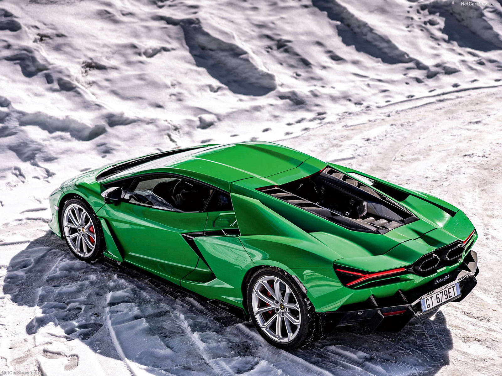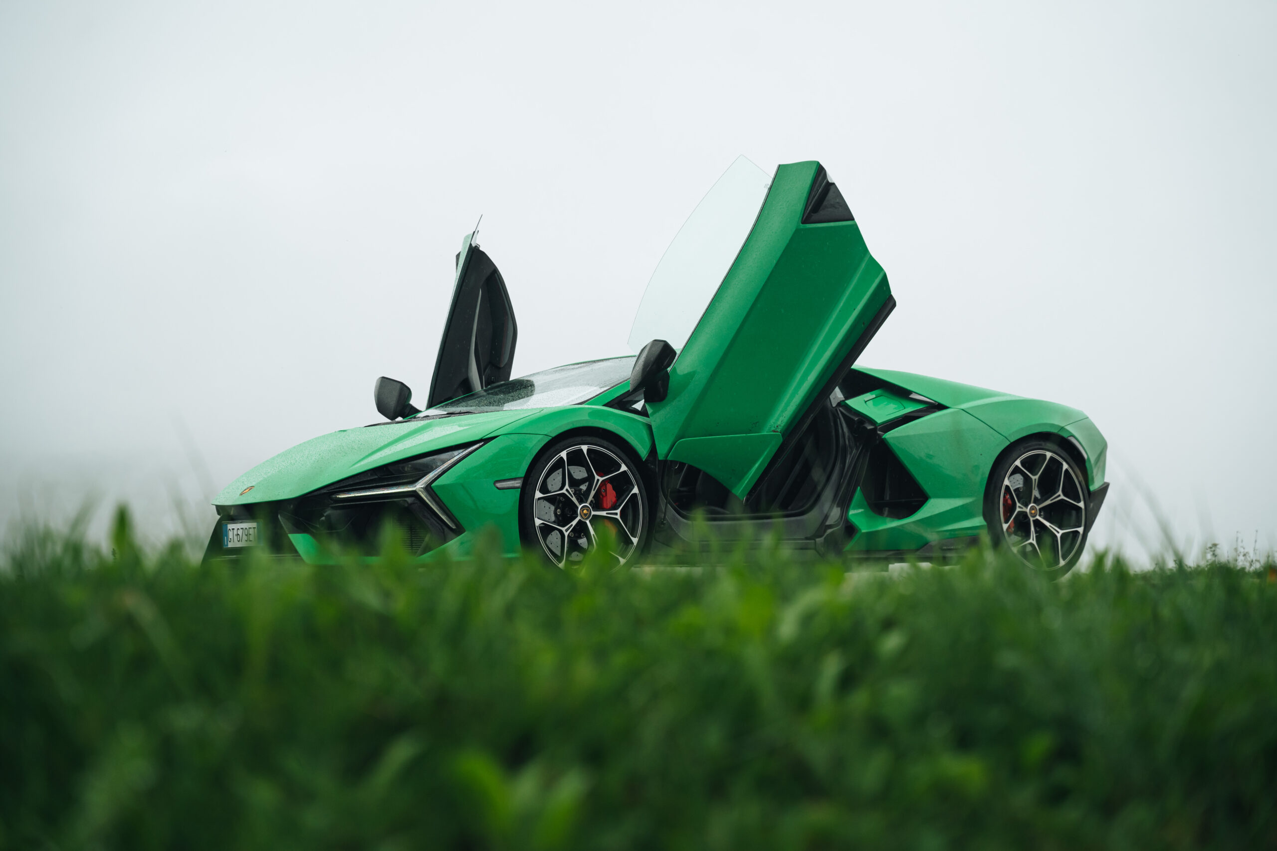 Voll getankt mit Fahrer sind daher fast zwei Tonnen auf der Straße unterwegs. Mit mehr als 350 km/h bei freier Strecke. Lamborghini verrät nicht genau, wieviel »mehr als 350 km/h« möglich sind. Für die Firmenhistorie zählt nur, dass der Ferrari F80 eben nur mit exakt 350 km/h angegeben ist. Dezente Randnotiz: Der ewige Konkurrent hat trotzdem mehr PS unter der Haube, und ist deutlich leichter. Dabei hat man in Sant’Agata nicht an Leichtbau-Materialien gespart. Das Monocoque ist aus Carbon, die Türen sind aus Alu und die Stoßfänger aus Thermoplast. Der Revuelto ist Leichtbau, doch unterm Strich macht die Hybridisierung das alles zunichte.